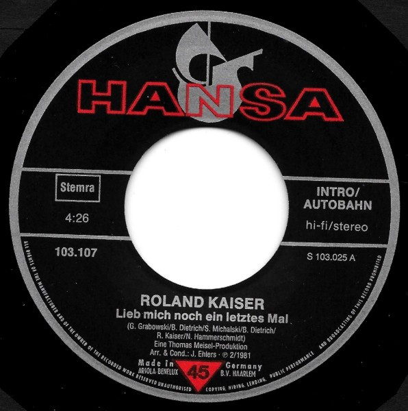 Roland Kaiser – Lieb’ Mich Ein Letztes Mal (1981) – Very Good Plus (VG+)