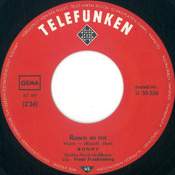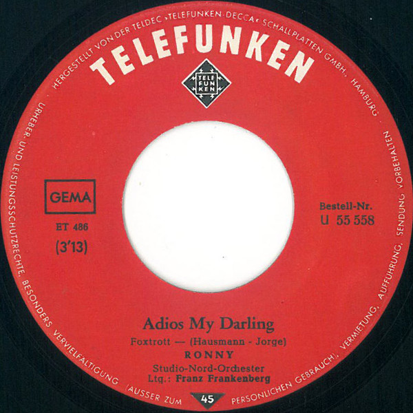Ronny (4) – Adios My Darling / Rosen So Rot (1967) – Very Good Plus (VG+)