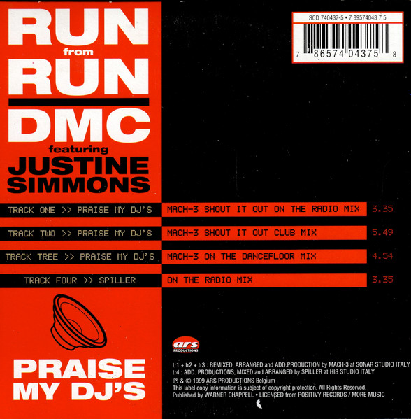 Run From Run DMC ℗&© 1999 ARS Productions Belgium Licensed from Positivy Records / More Music. Issued in a cardboard sleeve.