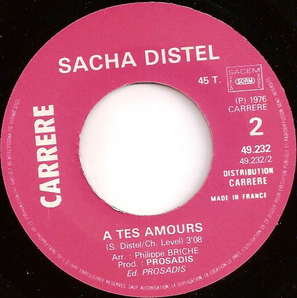 Sacha Distel – Le Père De Sylvia (1976) – Very Good Plus (VG+)