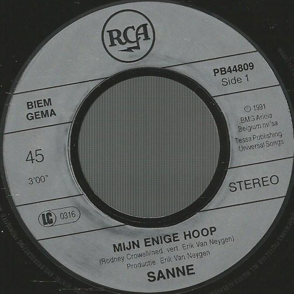 Sanne (2) – Mijn Enige Hoop (1991) – Near Mint (NM or M-)