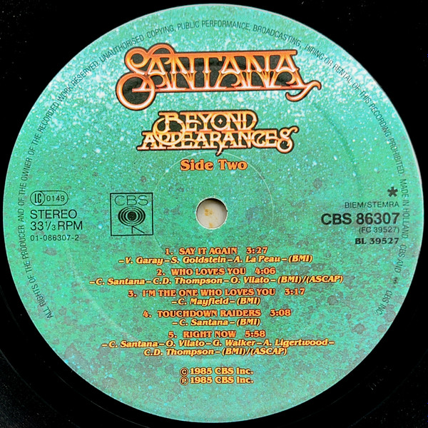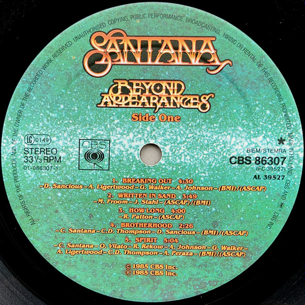 Santana – Beyond Appearances (1985) – Very Good Plus (VG+)