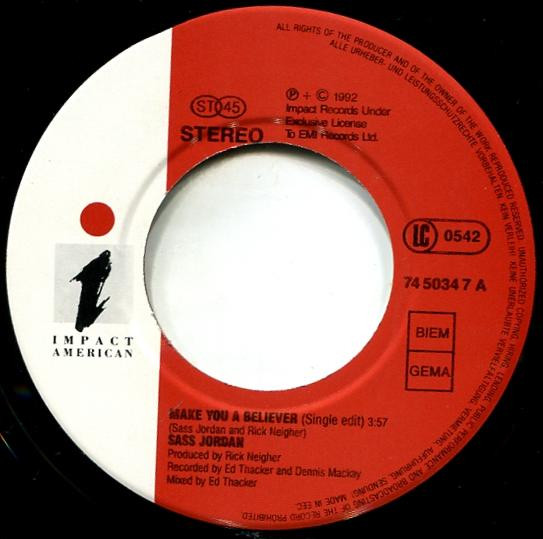 Sass Jordan – Make You A Believer (1992) – Very Good Plus (VG+)