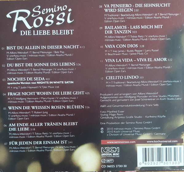 Semino Rossi – Die Liebe Bleibt (2010) – Very Good Plus (VG+)