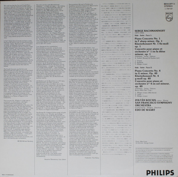 Sergei Vasilyevich Rachmaninoff – Klavierkonzerte 1&4 – Sergei Vasilyevich Rachmaninoff – Piano Concertos – Klavierkonzerte 1&4 (1983) – Near Mint (NM or M-)