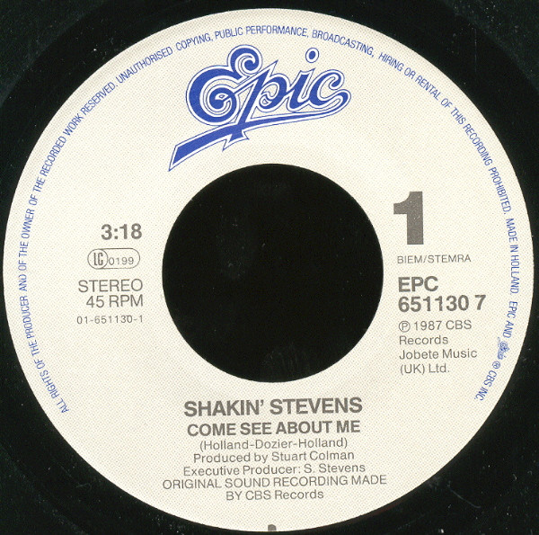 Shakin’ Stevens – Come See About Me (1987) – Very Good Plus (VG+)