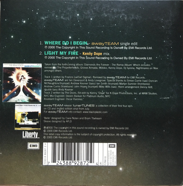 Shirley Bassey, The Away Team – Where Do I Begin (2000) – Very Good Plus (VG+)