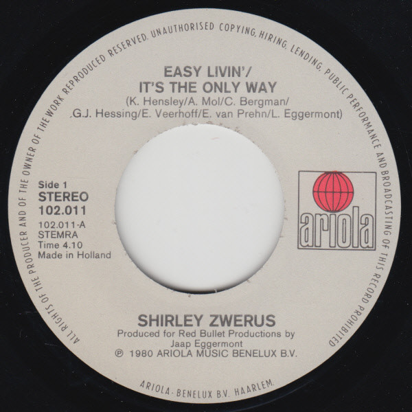 Shirley Zwerus – Easy Livin’ / It’s The Only Way (1980) – Very Good Plus (VG+)