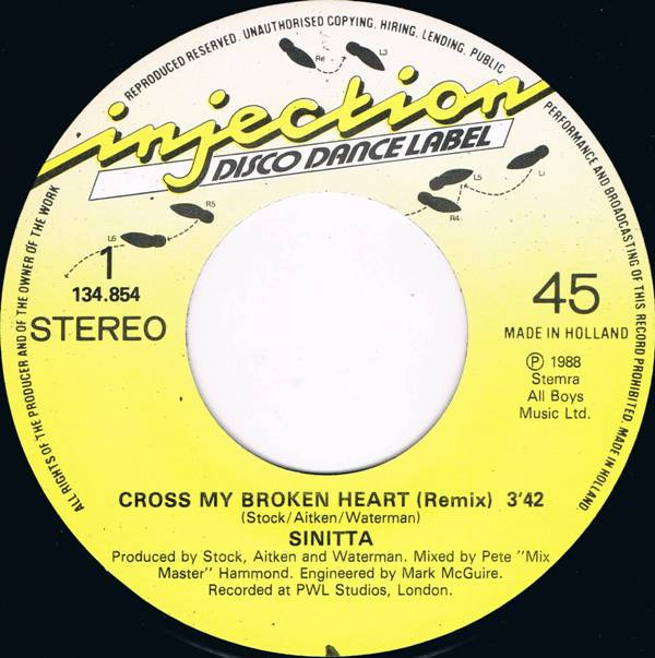 Sinitta – Cross My Broken Heart (Remix) (1988) – Very Good Plus (VG+)