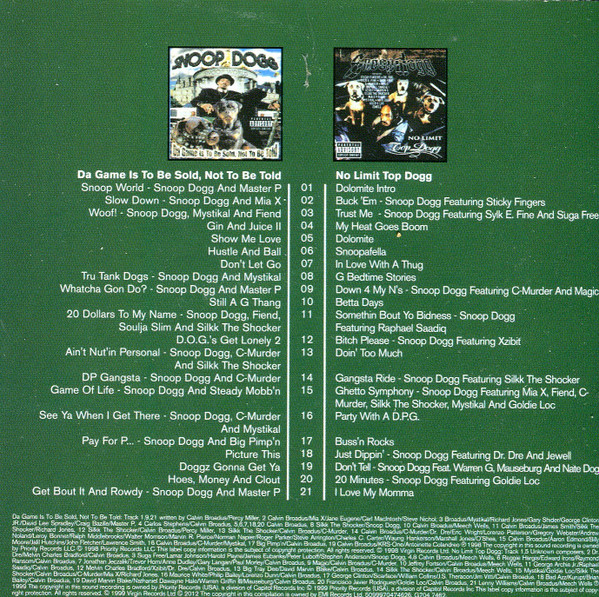 Snoop Dogg – Da Game Is To Be Sold, Not To Be Told / No Limit Top Dogg (2012) – Near Mint (NM or M-)