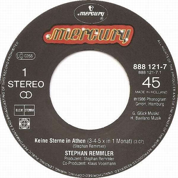 Stephan Remmler – Keine Sterne In Athen (3-4-5 X In 1 Monat) (1986) – Very Good Plus (VG+)