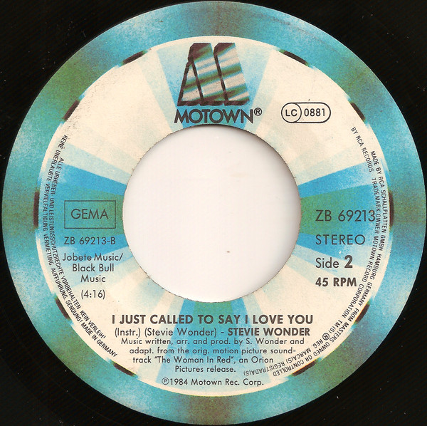 Stevie Wonder – I Just Called To Say I Love You (1984) – Very Good Plus (VG+)