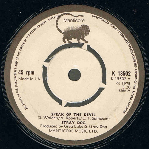 Stray Dog (3) – Speak Of The Devil / A Letter (1973) – Very Good Plus (VG+)