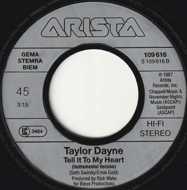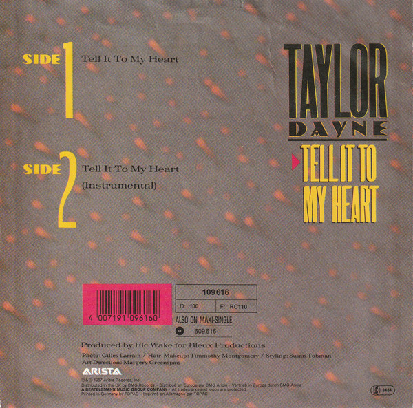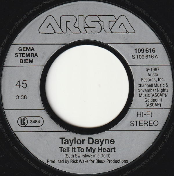 Taylor Dayne – Tell It To My Heart (1987) – Very Good Plus (VG+)