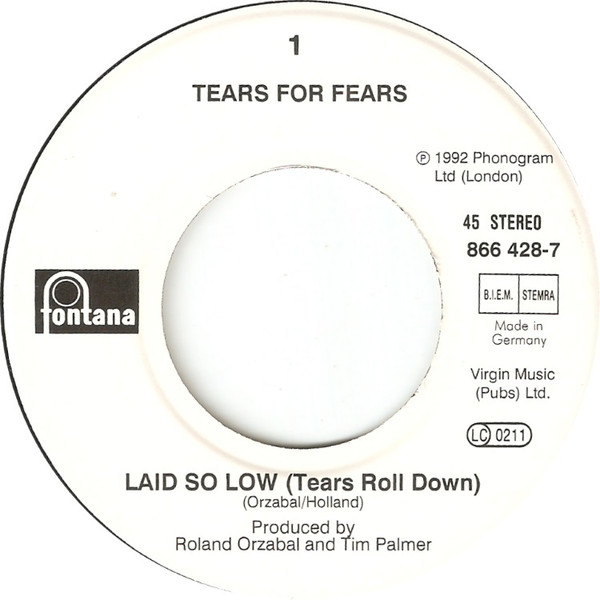Tears For Fears – Laid So Low (Tears Roll Down) (1992) – Very Good Plus (VG+)