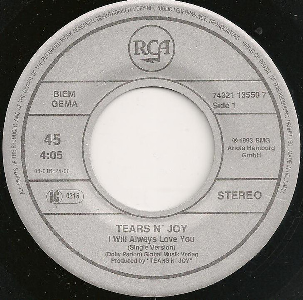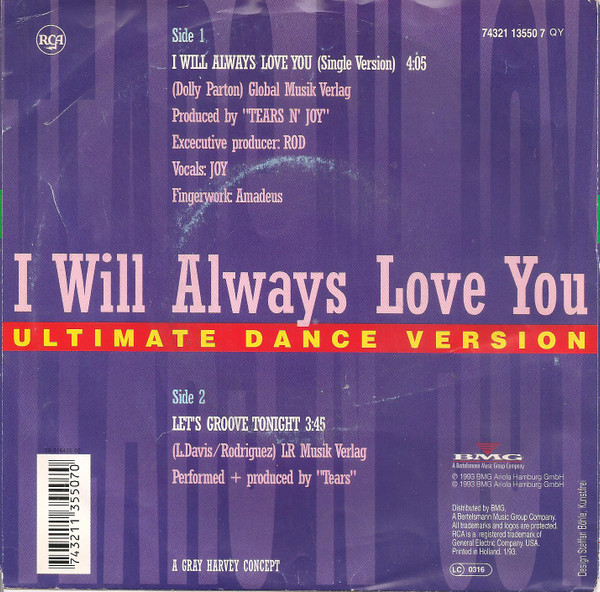 Tears N’ Joy – I Will Always Love You (Ultimate Dance Version) (1993) – Very Good Plus (VG+)