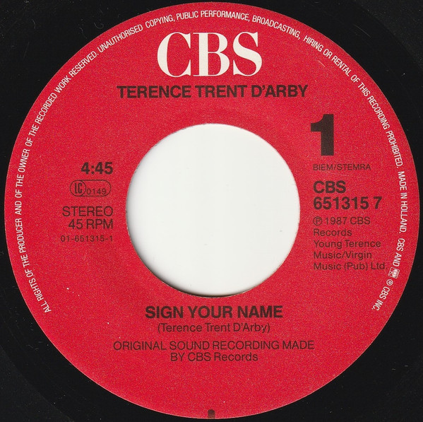 Terence Trent D’Arby – Sign Your Name (1987) – Very Good Plus (VG+)