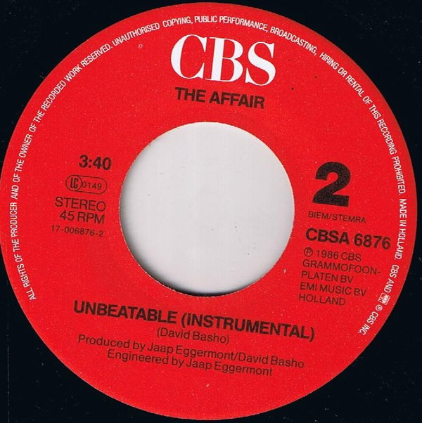 The Affair (4) – Unbeatable (1986) – Very Good Plus (VG+)