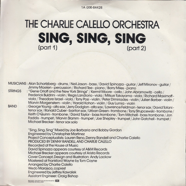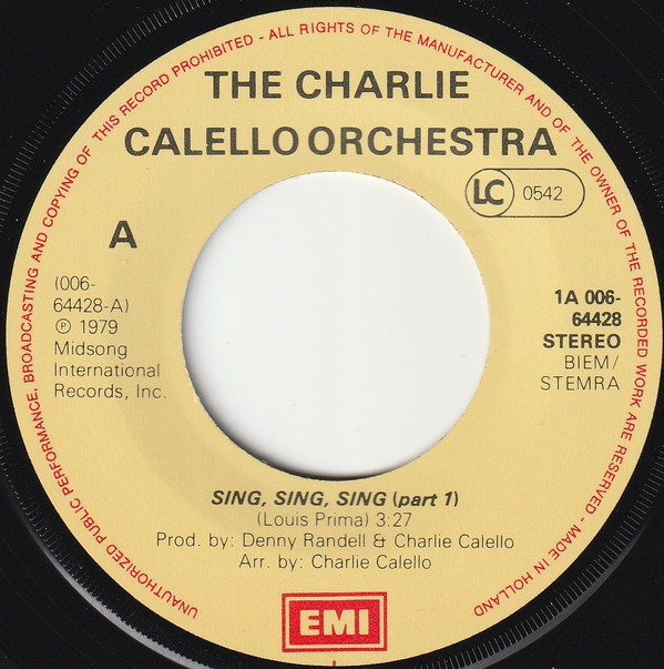The Charlie Calello Orchestra – Sing, Sing, Sing (Part 1) (Part 2) (1981) – Very Good Plus (VG+)