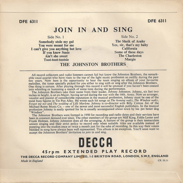 The Johnston Brothers – Join In And Sing (1955) – Very Good Plus (VG+)