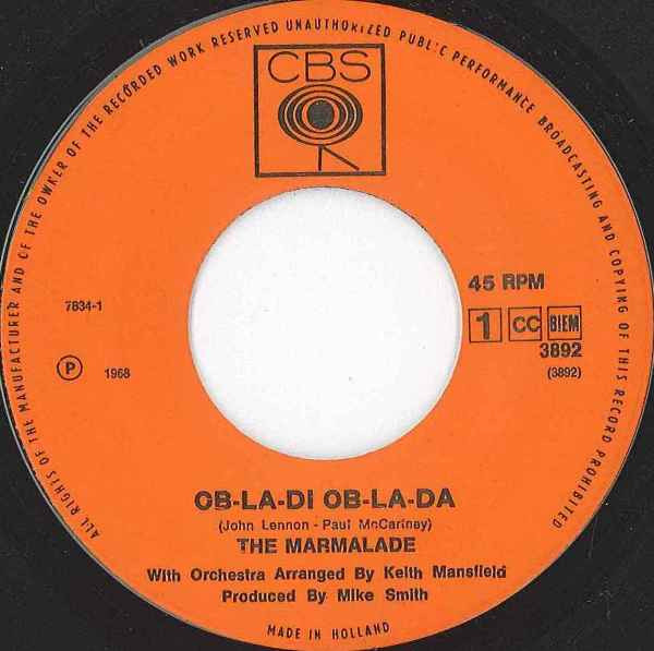 The Marmalade – Ob La Di ~ Ob La Da (1968) – Very Good (VG)