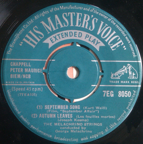 Green and silver ‘His Master’s Voice’ Extended Play labels