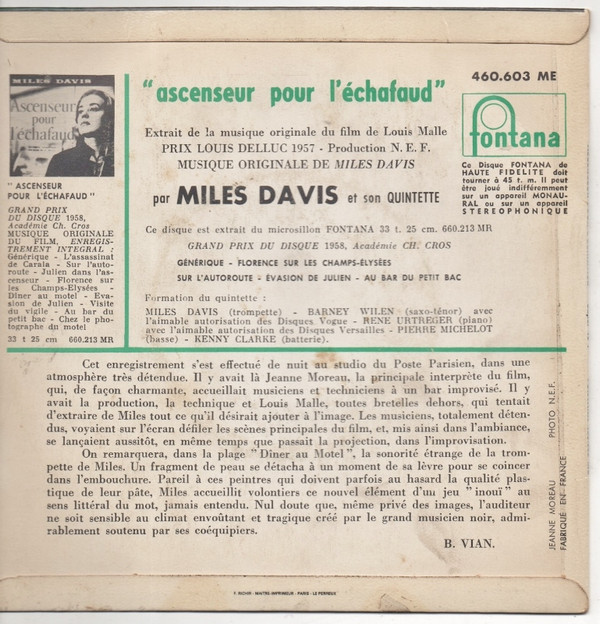 The Miles Davis Quintet – Ascenseur Pour L’échafaud (1958) – Very Good (VG)
