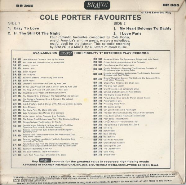 The Parris Mitchell Strings – Cole Porter Favourites (1965) – Very Good Plus (VG+)