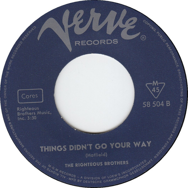 The Righteous Brothers – Go Ahead And Cry / Things Didn’t Go Your Way (1966) – Very Good Plus (VG+)