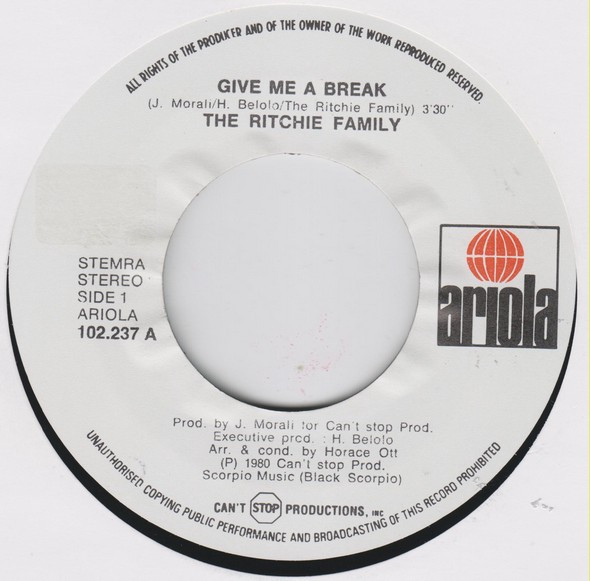 The Ritchie Family – Give Me A Break (1980) – Very Good Plus (VG+)