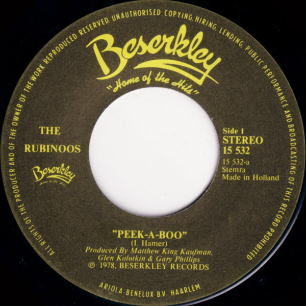 The Rubinoos – Peek A Boo / Hard To Get (1978) – Very Good Plus (VG+)