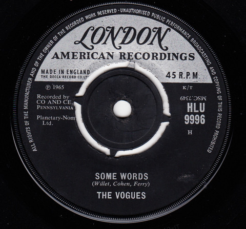The Vogues – You’re The One / Some Words (1965) – Very Good (VG)