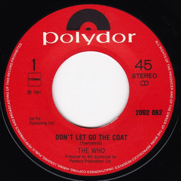 The Who – Don’t Let Go The Coat (1981) – Very Good Plus (VG+)