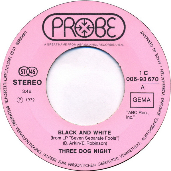 Three Dog Night – Black & White (1972) – Very Good Plus (VG+)