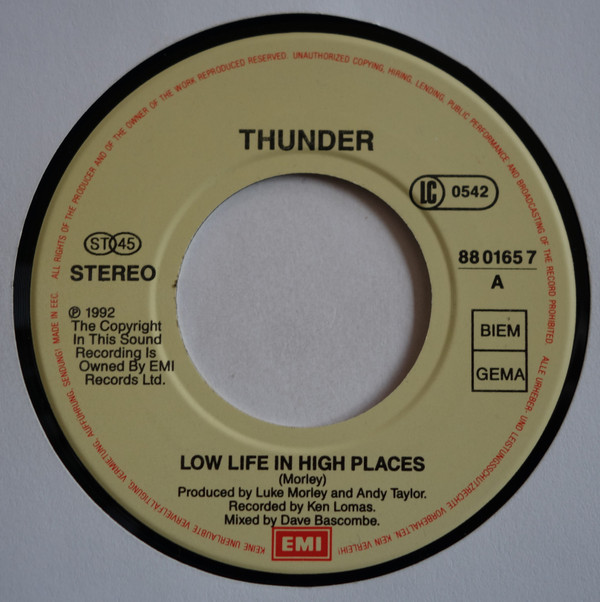 Thunder (3) – Low Life In High Places (1992) – Very Good Plus (VG+)