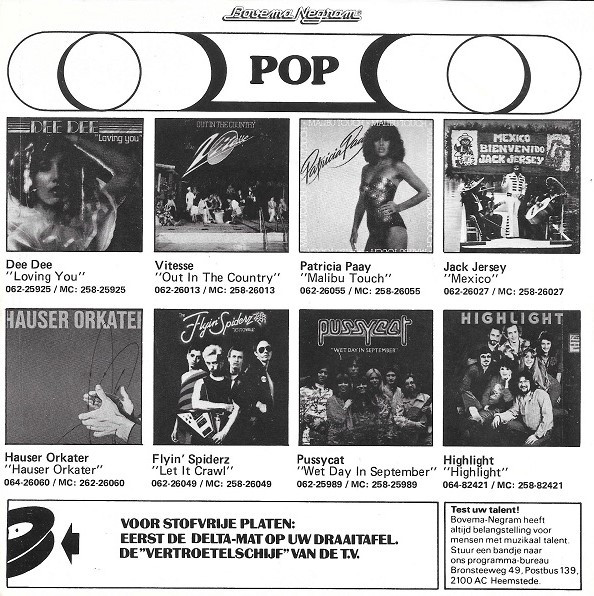 Alle geplaatste hoezen van Singles, Lp’s enz zijn slechts een voorbeeld, de echtheid kan afwijken van de realiteit.
