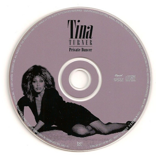 Different version than the one with [url=https://www.discogs.com/Tina-Turner-Private-Dancer/release/569697]STEREREO[/url] printed on the outer ring of the CD. Issued in a standard jewel case with 12.page foldout insert. Originally released in 1984. Track 1 Island Music Ltd/EMI Songs Ltd/EMI Publishing Ltd Produced for Gestalt Recorded in England at the Farmyard © 1984 Track 2 Rondor Music Publishing (LDN) Ltd/Warner Chappell Music Ltd © 1984 Track 3 Warner Chappell Music Ltd Recorded at: Mayfair Studios, London, England © 1984 Track 4 Rondor Music Publishing (LDN) Ltd/Warner Chappell Music Ltd Recorded at: Mayfair Studios, London, England © 1973/78 Track 5 Rondor Music Publishing (LDN) Ltd Recorded in England at Wessex and Good Earth Studios © 1984 Track 6 Burlington Music Co Ltd/Rondor Music Publishing (LDN) Ltd Recorded at Abbey Road and CBS Studios, London © 1971 Track 7 BMG Music Publishing Ltd Produced for Gestalt Recorded in England at the Farmyard © 1981 Track 8 Rondor Music Publishing (LDN) Ltd Recorded in England at Wessex and Good Earth Studios © 1983 Track 9 Northern Songs Ltd Produced for Crusaders Productions Inc. © 1965 Track 10 Chrysalis Music Ltd/EMI Music Publishing Ltd/RZO Music Ltd Recorded at CBS Studios, London © 1974 Track 11 MCPS Ltd/EMI Music Publishing Ltd © 1983 Track 12 MCPS/Beechwood Music Corp/Express Music/EMI Music Publishing Ltd © 1984 Track 13 © 1984 Track 14 PolyGram Music Publishing Ltd © 1984 Tracks 15, 17 Rondor Music Publishing (LDN) Ltd/Warner Chappell Music Ltd © 1984 Track 16 BMG Music Publishing Ltd Recorded at Farmyard in England Jamie-West Oram and Cy Curnin appear courtesy of Impact Records © 1984 Back cover: ℗1997 The copyright in this compilation is owned by Capitol Records Inc. ©1997 Capitol Records Inc. Marketed and distributed by EMI Printed in the EU Marketed by Parlophone CD face: ℗ 1997 The copyright in this compilation is owned by Capitol Records Inc. © 1997 Capitol Records Inc. Marketed and distributed by EMI Made in EU