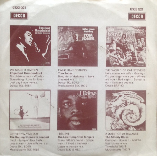 Tom Jones – Puppet Man / Every Mile (1971) – Very Good (VG)