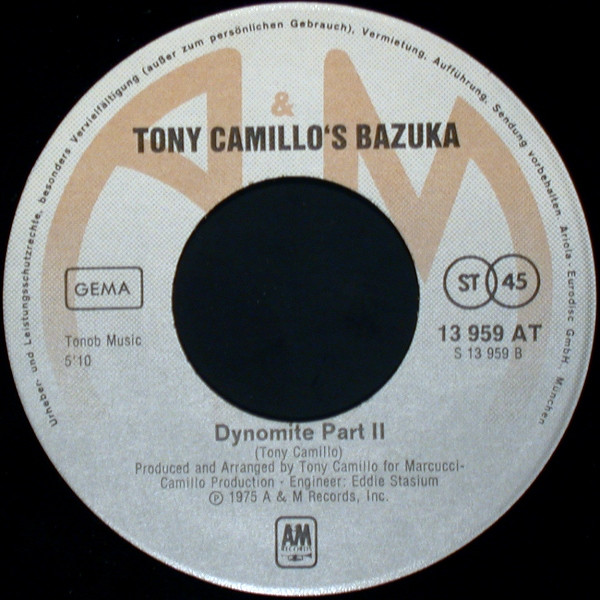 Tony Camillo’s Bazuka – Dynomite Part I & II (1975) – Very Good Plus (VG+)