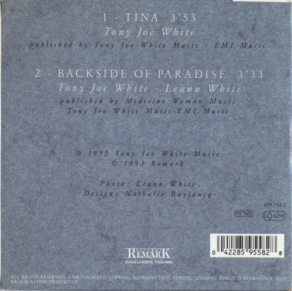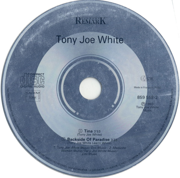 (P) 1993 Tony Joe White Music (C) 1993 Remark Made in France by PMDC ‘CD 2 titres’ in left top corner of front sleeve
