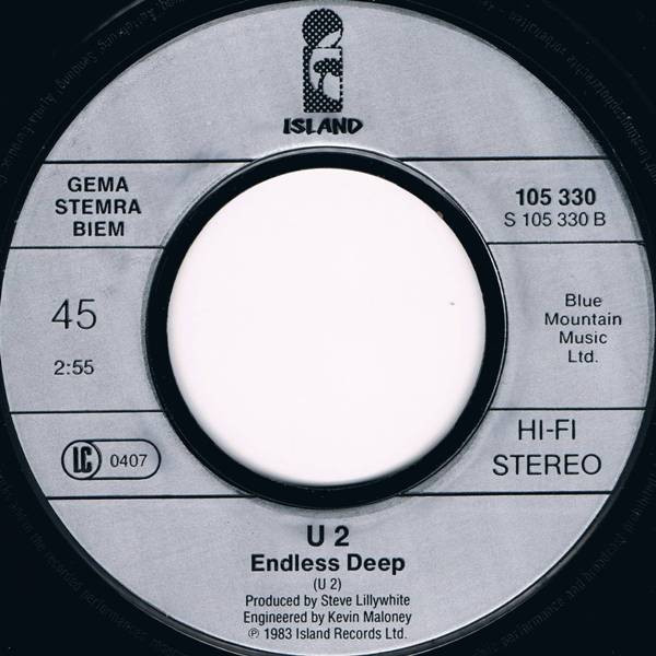 Track B : Previously Unavailable. Record incorrectly credits Steve Lillywhite as the producer for Endless Deep. Correct credits are on the sleeve. ℗+© 1983 Island Records Ltd. The runouts are stamped, the Roman numeral variant 2 side B is hand-etched