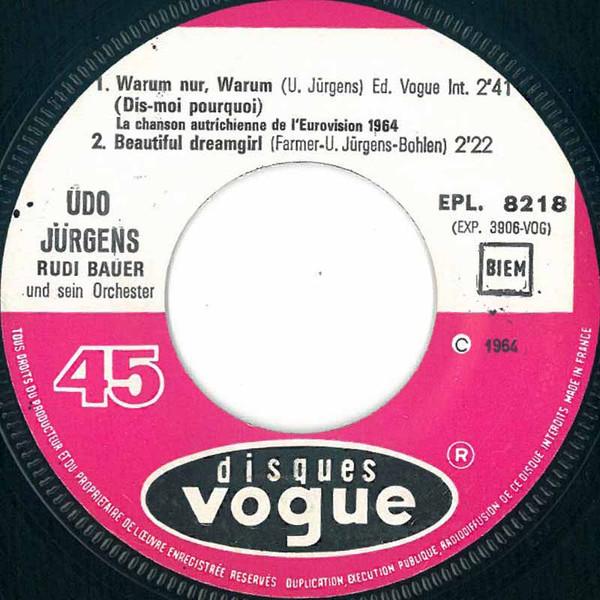 Udo Jürgens – Warum Nur, Warum = Dis-Moi Pourquoi (1964) – Good Plus (G+)
