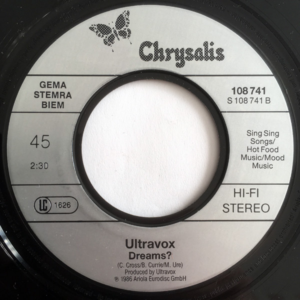 Ultravox – All Fall Down / Dreams? (1986) – Very Good Plus (VG+)