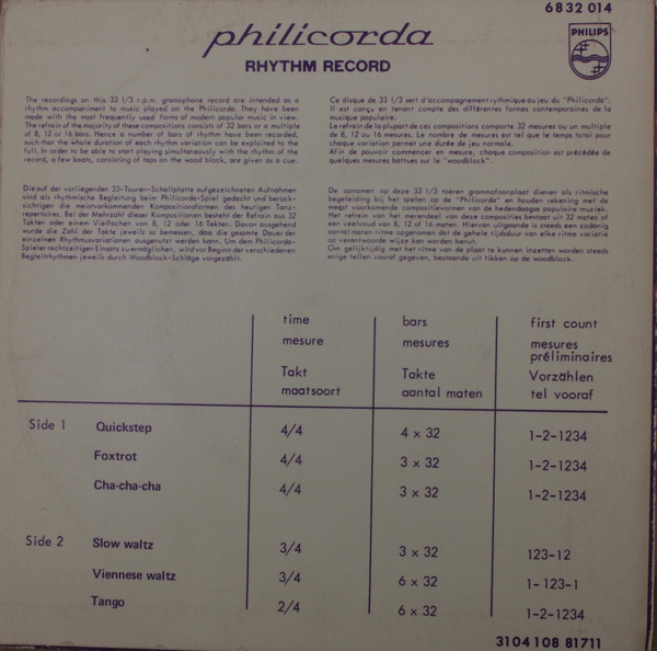 Unknown Artist – Philicorda Rhythm Record (1970) – Very Good Plus (VG+)