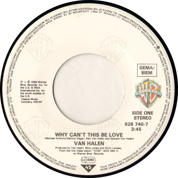 Van Halen – Why Can’t This Be Love (1986) – Very Good Plus (VG+)