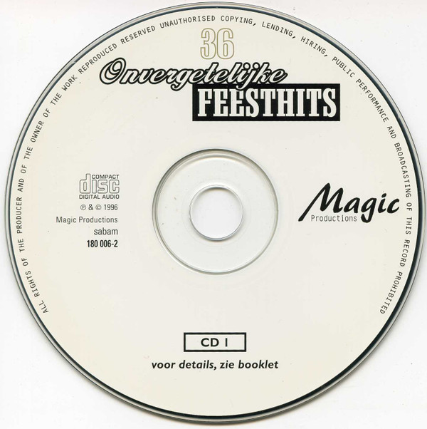 Various – 36 Onvergetelijke Feesthits (1996) – Very Good Plus (VG+)