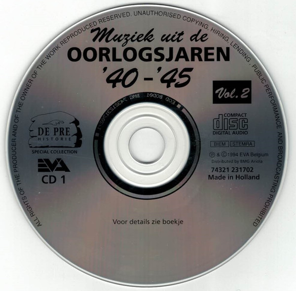 Various – Muziek Uit De Oorlogsjaren ’40-’45 Vol. 2 – Various – De Pre Historie – Muziek Uit De Oorlogsjaren ’40-’45 Vol. 2 (1994) – Near Mint (NM or M-)