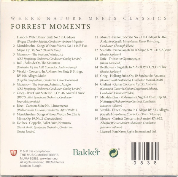 Distributed in a cardboard sleeve as promotional gift by gardening retailer Bakker, sometime 2009 or earlier. Release title is not a typo here, it is actually misspelled as stated. ℗ & © this compilation: The Music Marketeers Made in Europe After tracklist it says ‘Licensed from Naxos Rights International Ltd.’, not really clear if this refers to all tracks or just the last one.