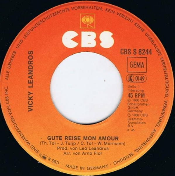Vicky Leandros – Gute Reise Mon Amour (1980) – Very Good (VG)