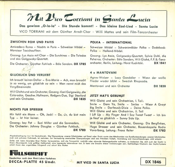 Vico Torriani – Mit Vico In Santa Lucia () – Very Good Plus (VG+)
